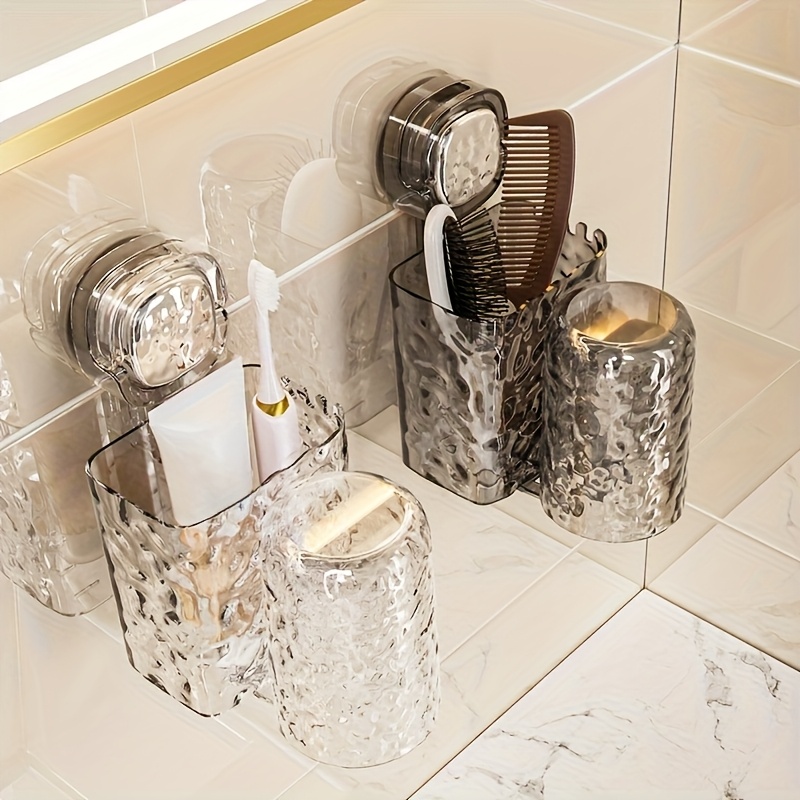 2026 New Wall-mounted Suction Cup Toothbrush Holder with Mouthwash Cup, Durable Plastic, Toothbrush Holder, Toothbrush Holderwall Mounted, Space Saving, Easy to Clean, No Need to Drill Holes in the Bathroom Sink, Bathroom Storage Rack, Christmas!