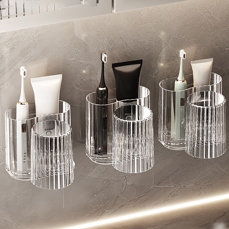 Wall-Mounted Toothbrush Holder Toothbrush Holder With Cup, No Drilling Required